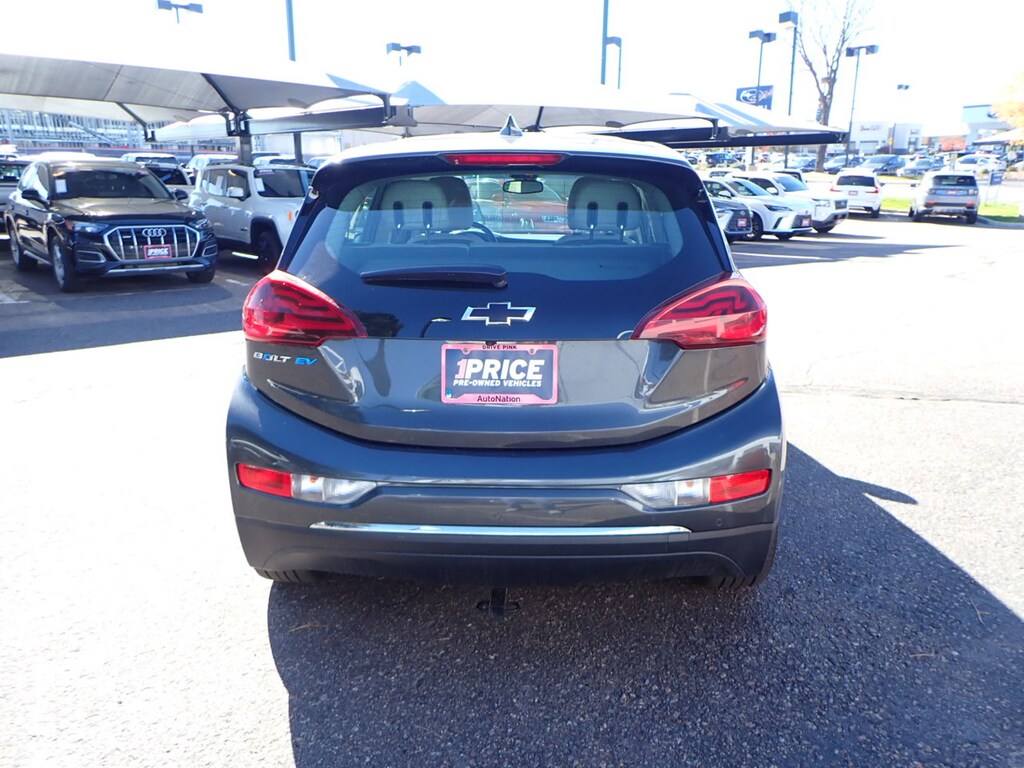 AutoNation Subaru Arapahoe is pleased to be currently offering this 2019 Chevrolet Bolt EV LT with 46,820mi. This Chevrolet includes: NIGHTFALL GRAY METALLIC EMISSIONS, FEDERAL REQUIREMENTS STEERING WHEEL, HEATED Heated Steering Wheel WHEELS, 17" Aluminum Wheels MIRROR, INSIDE REARVIEW AUTO-DIMMING Auto-Dimming Rearview Mirror LICENSE PLATE BRACKET, FRONT MOUNTING REAR PARKING ASSIST Rear Parking Aid GRILLE, BLACK REAR CROSS-TRAFFIC ALERT Cross-Traffic Alert COMFORT AND CONVENIENCE PACKAGE Heated Steering Wheel Auto-Dimming Rearview Mirror Leather Steering Wheel Heated Front Seat(s) EMISSIONS, FEDERAL, TIER 2 AUDIO SYSTEM, CHEVROLET INFOTAINMENT SYSTEM Smart Device Integration AM/FM Stereo Bluetooth Connection Auxiliary Audio Input MP3 Capability LPO, INTERIOR PROTECTION PACKAGE Floor Mats LANE CHANGE ALERT WITH SIDE BLIND ZONE ALERT Blind Spot Monitor SEATS, HEATED DRIVER AND FRONT PASSENGER Heated Front Seat(s) LPO, BLACK BOWTIE EMBLEMS, FRONT AND REAR TIRES, P215/50R17 ALL-SEASON BLACKWALL, MICHELIN SELFSEAL PUNCTURE-SEALING (STD) Tires - Front All-Season Tires - Front Performance Tires - Rear Performance Tires - Rear All-Season DC FAST CHARGING Plug-In Electric Fast Charge ELECTRIC DRIVE UNIT 1-Speed A/T A/T ENGINE, NONE (STD) Electric Fuel System Electric Motor LPO, ALL-WEATHER FLOOR MATS, FRONT AND REAR Floor Mats STEERING WHEEL, 3-SPOKE LEATHER-WRAPPED Leather Steering Wheel LPO, ALL-WEATHER CARGO MAT SEATS, FRONT BUCKET (STD) Bucket Seats LT PREFERRED EQUIPMENT GROUP DRIVER CONFIDENCE PACKAGE Rear Parking Aid Blind Spot Monitor Cross-Traffic Alert DARK GALVANIZED/SKY COOL GRAY, DELUXE CLOTH SEAT TRIM Cloth Seats *Note - For third party subscriptions or services, please contact the dealer for more information.* The incredibly low mileage and painstaking upkeep on this Chevrolet Bolt EV makes it a once-in-a-lifetime deal that won't last long! Call us today to reserve your test drive! With complete records on this pre-owned vehicle, you'll have peace of mind and the satisfaction in knowing your new purchase is safe and reliable. If you are looking for a pre-owned vehicle that looks brand-new, look no further than this Nightfall Gray Metallic Chevrolet Bolt EV. Fast and exciting, this Chevrolet Bolt EV LT is a true testament to the pursuit of automotive distinction by Chevrolet. Once you're behind the wheel of this incredible machine, you will not think twice about purchasing this vehicle. Treat yourself to a Chevrolet Bolt EV LT that's got it all. Nearly every option is packed into this beautiful ride. Added comfort with contemporary style is the leather interior to heighten the quality and craftsmanship for the Chevrolet Bolt EV LT. With an efficient and easy to use navigation system, this Chevrolet Bolt EV will help get you from Point A to Point B in no time flat. Collapse Expand Pause Play