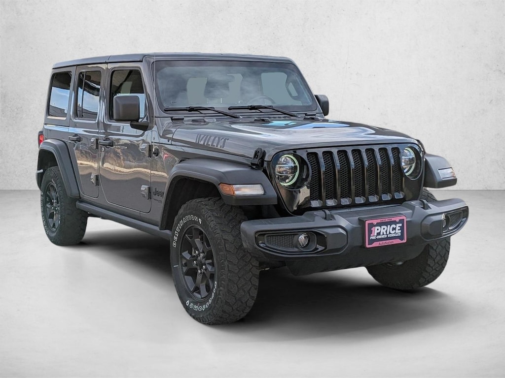 This Jeep includes: BLACK 3-PIECE HARD TOP Targa Roof Rear Defrost Convertible Hardtop STING-GRAY CLEARCOAT TRANSMISSION: 8-SPEED AUTOMATIC (850RE) 8-Speed A/T Transmission w/Dual Shift Mode A/T BLACK, CLOTH LOW-BACK BUCKET SEATS Cloth Seats Bucket Seats QUICK ORDER PACKAGE 25W WILLYS Fog Lamps Automatic Headlights Driver Vanity Mirror Passenger Vanity Mirror 4-Wheel Disc Brakes Power Mirror(s) Power Windows Heated Mirrors Security System Leather Steering Wheel Power Door Locks Keyless Entry Passenger Illuminated Visor Mirror Driver Illuminated Vanity Mirror ABS ENGINE: 3.6L V6 24V VVT ETORQUE UPG V6 Cylinder Engine Gasoline Fuel TECHNOLOGY GROUP Multi-Zone A/C Smart Device Integration A/C Climate Control Satellite Radio Requires Subscription CONVENIENCE GROUP Universal Garage Door Opener *Note - For third party subscriptions or services, please contact the dealer for more information.* Its all in the history! Check out the CARFAX and let the car sell itself! It's a ONE OWNER vehicle that has your name on it. Doesn't get much better than that! S-U-V = Start Ur Voyage. Being stuck sucks! You won't have to worry about that in this 4x4 beast. Believe us, this Wrangler's 4WD can handle pavement and dirt alike! Great city driving, or you can even switch on the 4WD to really put this beast to work! Please adopt me, my previous owners barely drove me. Only 36,298mi :( Come see for yourself!!! This Wrangler is as clean as it looks!!! Spotless interior. SUPER well taken care of! THANK YOU FOR VISITING AUTO NATION CHRYLSER JEEP ON BROADWAY! WE ARE YOUR ONE STOP SHOP FOR ALL YOUR VEHICLE NEEDS. SCHEDULE YOUR APPOINTMENT TODAY! 303-578-6103 5445 SOUTH BROADWAY, LITTLETON CO 80121 Your dealer in Denver, Englewood, Centennial, Aurora, Boulder, Littleton, Lakewood, Golden, Thornton, Castle Rock.