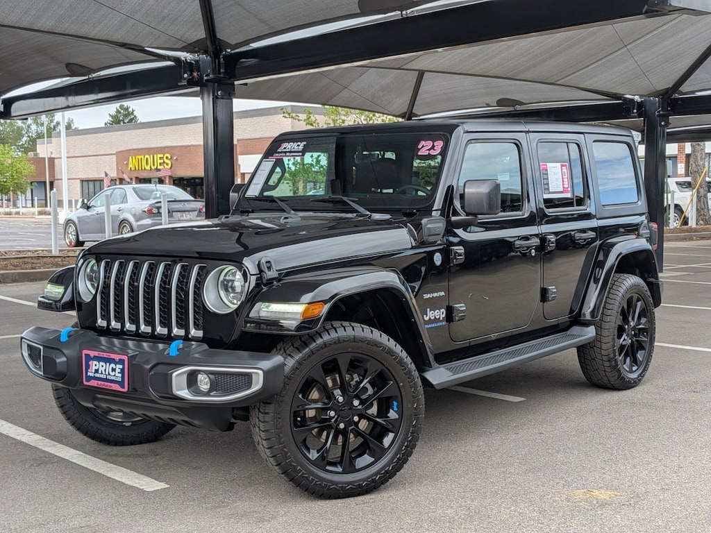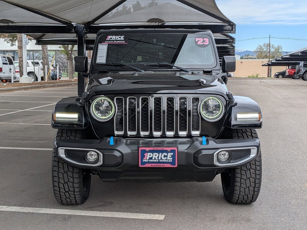 2023 Jeep Wrangler 4Door Sahara 4XE PlugIn Hybrid 4WD One Owner QUICK HIGHLIGHTS PlugIn Hybrid Wrangler 4XE with fulltime 4WD 1Owner, No Accidents Reported (CARFAX) Welldocumented dealer service history KEY FEATURES Engine/Trans: 2.0L Turbo I4 PlugIn Hybrid, 8Speed Automatic 4WD/Drivetrain: SelecTrac FullTime 4WD, 3.73 Rear Axle Tech Features: Uconnect 4C NAV w/ 8.4 Touchscreen, Apple CarPlay, Android Auto, 4G LTE WiFi Hotspot Safety Features: ParkView Backup Camera, Advanced Multistage Airbags, HillStart Assist Exterior/Interior: Black ClearCoat Paint, Premium McKinleyTrimmed Seats, LED Lighting Group, 20 Painted Aluminum Wheels Packages: Customer Preferred Package 29P, Black 3Piece Hard Top CONDITION Ownership: 1Owner Personal Lease (California) Accidents: No accidents or damage reported (CARFAX) Service History: Regular dealerperformed maintenance with 14+ detailed records Recent Work: PCM reprogramming completed April 2026 RECENT MAINTENANCE Multiple oil & filter changes Tire rotations and pressure checks Maintenance inspections completed PCM reprogrammed (03/2024 & 04/2026) SELLER NOTES Offered by a trusted dealershipprofessionally serviced, plugin hybrid efficiency with iconic Wrangler capability. Mileage: 50,570 miles VIN: 1C4JJXP60PW599199 THANK YOU FOR VISITING AUTO NATION CHRYLSER JEEP ON BROADWAY! WE ARE YOUR ONE STOP SHOP FOR ALL YOUR VEHICLE NEEDS. SCHEDULE YOUR APPOINTMENT TODAY! 303-578-6103 5445 SOUTH BROADWAY, LITTLETON CO 80121 Your dealer in Denver, Englewood, Centennial, Aurora, Boulder, Littleton, Lakewood, Golden, Thornton, Castle Rock.