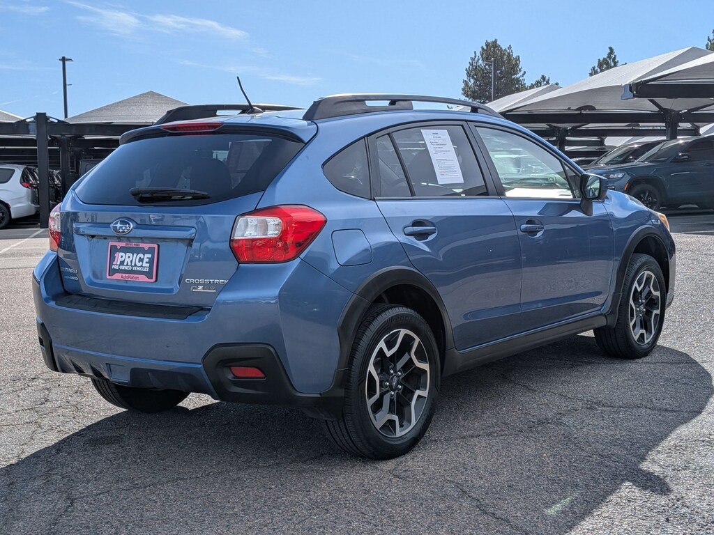2016 Subaru Crosstrek 2.0i Premium AWD | Clean CARFAX | WellMaintained QUICK HIGHLIGHTS AllWheel Drive capability Clean CARFAX No accidents or damage reported Recently serviced and inspected in Colorado KEY FEATURES Engine/Trans: 2.0L H4 DOHC | CVT Automatic 4WD/Drivetrain: Subaru Symmetrical AllWheel Drive Tech Features: Bluetooth, touchscreen infotainment, steeringwheel controls Safety Features: ABS, stability control, traction control, multiple airbags Exterior/Interior Features: Roof rails, alloy wheels, premium cloth seats, splitfold rear seat Packages: Premium Package CONDITION Owners: 3 previous owners (personal lease & personal use) Accidents: No accidents or damage reported on CARFAX Service History: 14 service records with consistent maintenance Recent Work Completed: Rear wheel bearing replaced; full inspection performed RECENT MAINTENANCE Oil & filter change Mar 2026 Air filter & cabin air filter replaced Mar 2026 Tires replaced, mounted, balanced, and alignment performed Dec 2025 Rear wheel bearing/hub replaced Mar 2026 SELLER NOTES Welldocumented 2016 Subaru Crosstrek Premium with AWD, a clean history, and strong recent service. Ideal Colorado vehicle offering reliability, practicality, and confidence in all weather. THANK YOU FOR VISITING AUTO NATION CHRYLSER JEEP ON BROADWAY! WE ARE YOUR ONE STOP SHOP FOR ALL YOUR VEHICLE NEEDS. SCHEDULE YOUR APPOINTMENT TODAY! 303-578-6103 5445 SOUTH BROADWAY, LITTLETON CO 80121 Your dealer in Denver, Englewood, Centennial, Aurora, Boulder, Littleton, Lakewood, Golden, Thornton, Castle Rock.